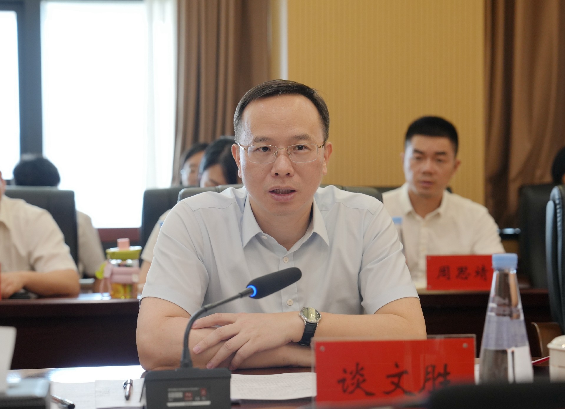 9月2日,省地质院党委书记谈文胜带队到省核地质所开展班子建设及改革发展转型工作调研。院党委委员、副院长刘凤娟参加全体干部大会宣布所新任主要负责人并主持座谈会。