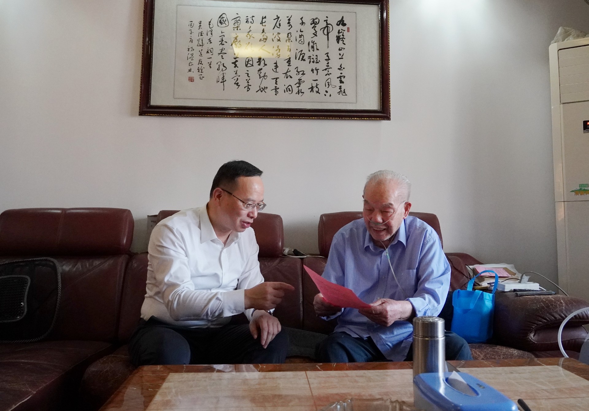 谈文胜分别走访看望了新中国成立前老党员宋显明和离休老党员吴德骅,关切询问他们的生活起居和身体情况,详细了解他们的革命经历和工作经历,一起回顾了湖南地质事业的发展历程,并介绍了湖南地质改革转型发展等情况。看到二老精神矍铄、身体硬朗,分别享受正省部级和副省部级单项医疗待遇,谈文胜十分欣慰。他表示,老党员老干部是新中国站起来、富起来、强起来的参与者和见证者,他们为共和国的缔造、“两弹一艇”铀矿勘探和湖南地质事业舍生忘死、披星戴月、筚路蓝缕作出了重要贡献,共和国不会忘记、新湖南不会忘记、地质人不会忘记,希望老党员老干部们一如既往关心地质工作,把好经验、做法继续传承给新地质人,共同推动湖南地质事业高质量发展。
