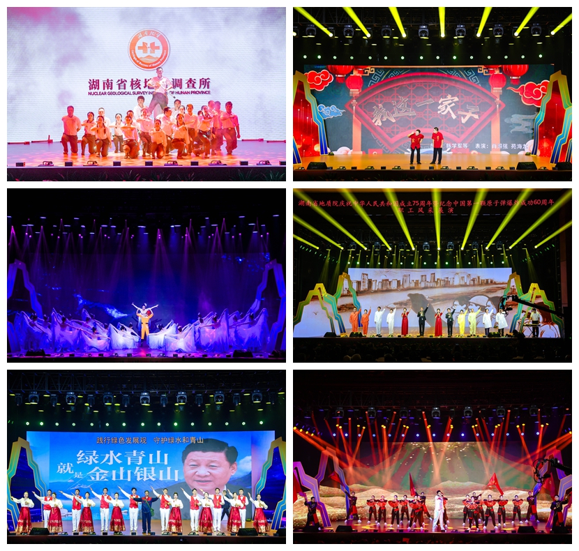 文艺展演以“光荣属于新时代地质筑梦人”为主题,分为“青山不墨千秋画”“乘风破浪会有时”“看似寻常最奇崛”“而今迈步从头越”四个篇章。院机关、院属15家事业单位、院管企业演出人员悉数登场,将歌舞、相声、话剧、朗诵等多种艺术形式汇聚成19个节目,共同彰显了地勘单位职工的精神风貌和爱国情怀。《地质绘山河》《地质光荣 奋斗有我》《罗布泊的回响》《矿世之约》《以迅应汛》《探锑报国的现代传奇》情景重现,一遍遍带观众身临其境地感受了湖南地质人不畏艰险的意志品质;《红旗颂》《我和我的祖国 勘探队员之歌》《守护》《未来已来》《飞天·奋进者之歌》《测绘之光·智绘未来》美轮美奂,一场场视觉盛宴呈现在观众眼前;《亲亲常德待客来》《“筑”福祖国》《我这一家子》《核的力量》《地质湘军群英绘》《山河图·踏梦行》《沁园春·雪》别具一格,一次次点燃了现场观众的似火热情。最终,经过现场与场外双通道的投票,核地质所荣获“最佳风采奖”,地灾所、地信所、物化所荣获“最佳人气奖”,空间所、水环所、资源所、核应用中心、院机关荣获“最佳创意奖”,测试中心、矿调所、生态所、工矿所、中南建设公司、地调所、城调所、遥感所荣获“同心协作奖”。