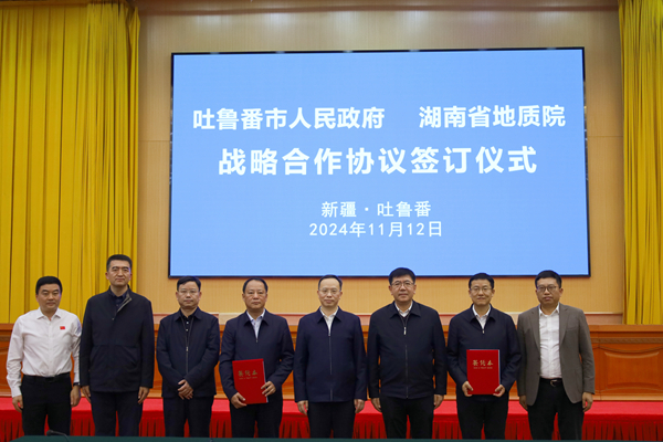深化合作,共筑未来。11月12日,湖南省地质院与吐鲁番市人民政府举行战略协议签订仪式,共绘地质合作新蓝图。湖南省地质院党委书记谈文胜,吐鲁番市委副书记、市长克衣色尔·克尤木出席签约仪式并讲话。省地质院党委委员、副院长刘拥军和吐鲁番市副市长陈岩岭代表双方签署战略合作框架协议。
